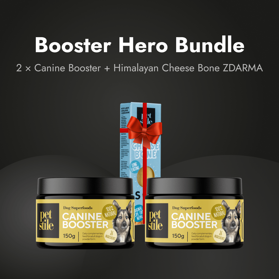Obsahuje dvě sklenice našeho prémiového, nejprodávanějšího Canine Boosteru a ZDARMA Cheese Bone pro maximální podporu zdraví vašeho psa! Tento komplexní balíček poskytuje kompletní podporu imunity, trávení, kloubů a celkové vitality - nyní s pamlskem pro podporu kloubů, který váš pes bude milovat.